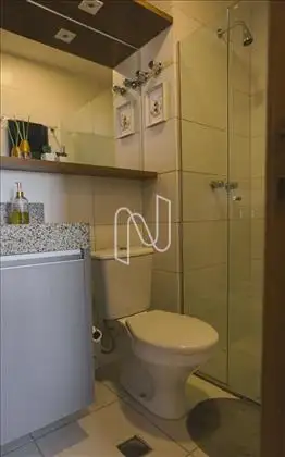 Conta com vaga coberta rotativa, varanda, piso em porcelanato.