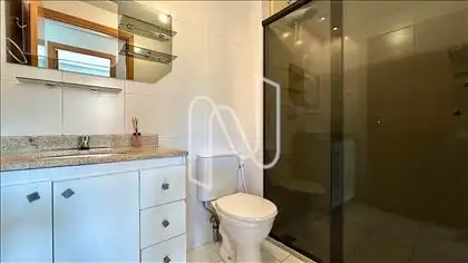Ambientes funcionais com móveis planejados no quarto principal, cozinha e banheiro