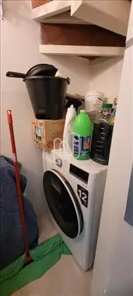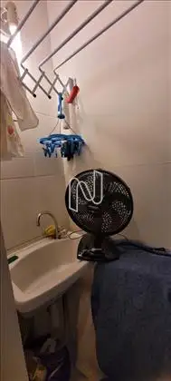 Área de serviço com instalação para máquina de lavar e tanque.