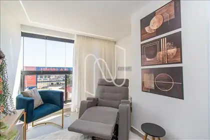 - Sala para dois ambientes com varanda incorporada e ar-condicionado.
