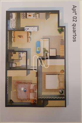 Apartamento de 50m², com 2 quartos, sala, cozinha, área de serviço, semi suites e vaga de garagem coberta.