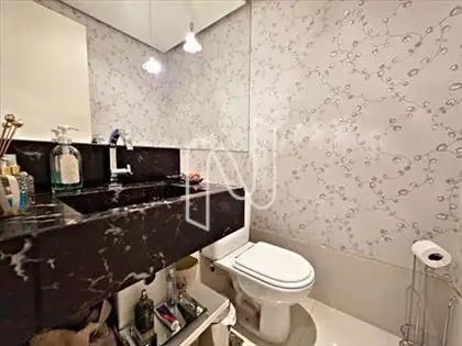- Banheiros com bancadas em pedras nobres.