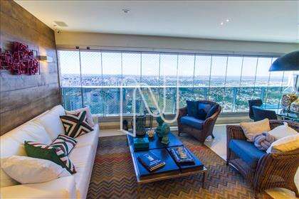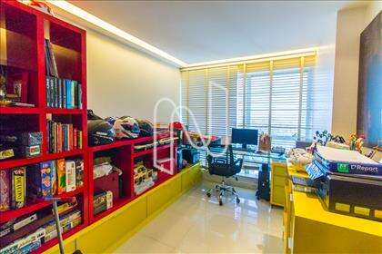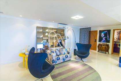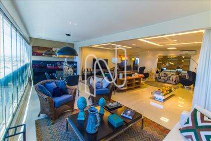Apartamento requintado, luxuoso, vazado, andar alto, varanda, 4 quartos , 4 suítes, 6 banheiros, closet , 04 vagas de garagem, sala com 04 ambientes, projeto de iluminação, sistema câmeras, lavabo, escritório com ar condicionado. 1º quarto com closet e ar condicionado, 2 º quarto suíte máster com; armários, varanda, ar condicionado, banheiro com 2 chuveiros, 3º quarto suíte com armários e ar condicionado e 4 º quarto suíte com armários, ar condicionado.