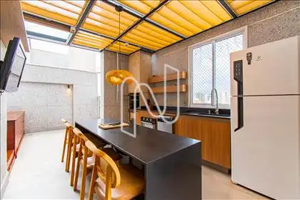 - Área gourmet completa, com churrasqueira a carvão, bancadas generosas e jacuzzi para relaxar e curtir o sol;
